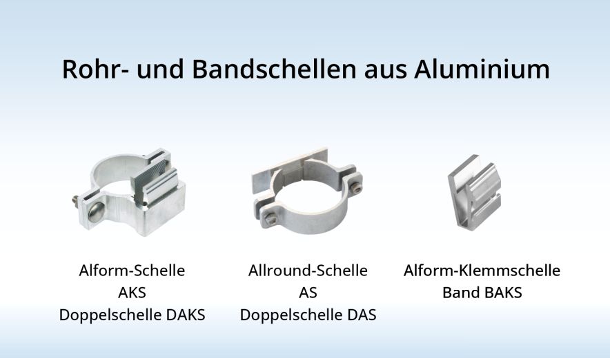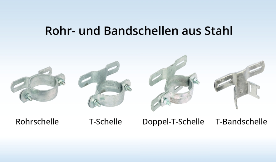 • Rohr- und Bandschellen für runde oder kantige Pfosten