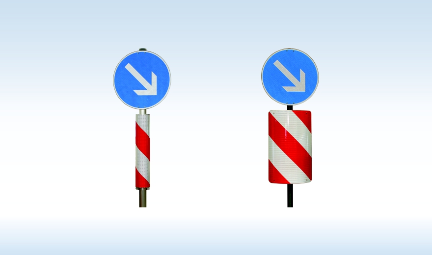Verkehrsleitsäulen werden auf Verkehrsinseln oder als Fahrbahnteiler eingesetzt.